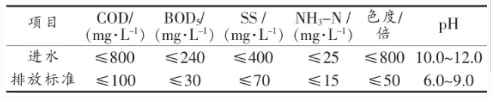 產(chǎn)生的綜合廢水色度高、pH高、COD高、BOD低,并含有少量硫化物。綜合廢水的B/C約為0.34,可生化性能一般。
